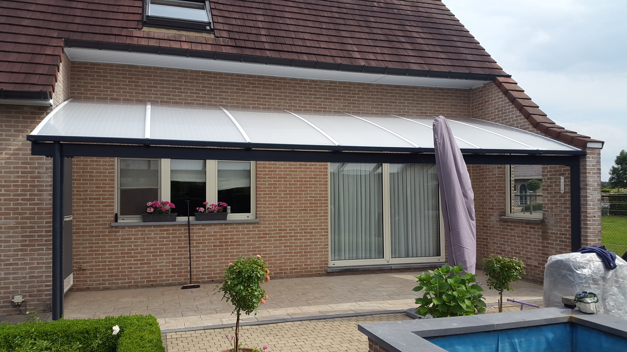 pergola met een licht rond aflopend dak