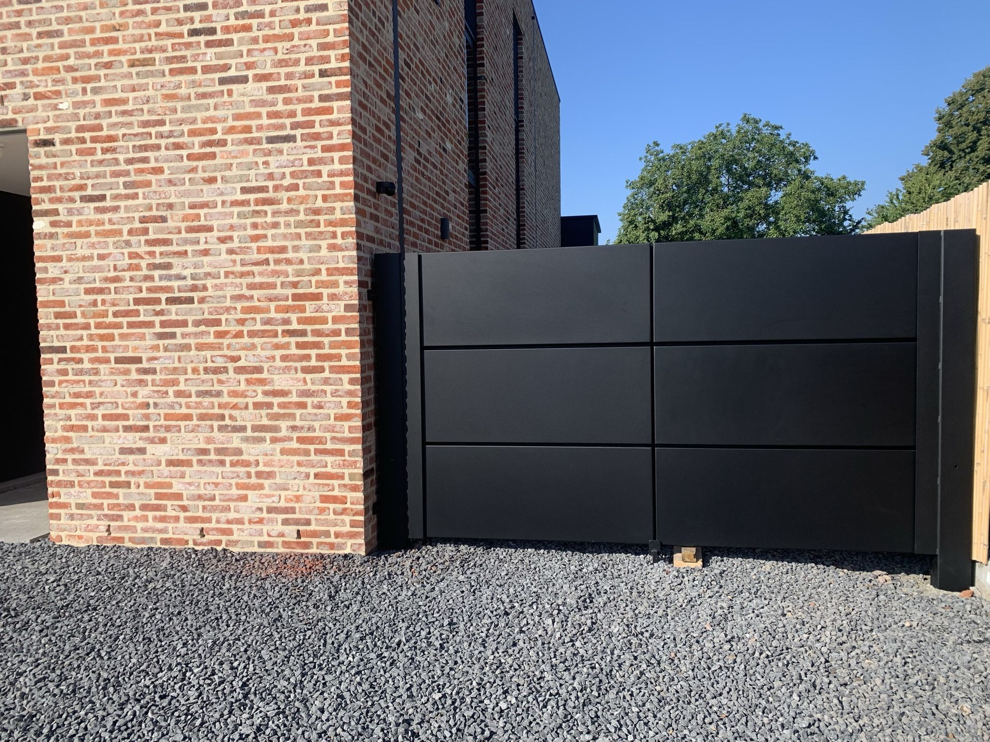 Moderne poort met aluminium bakken
