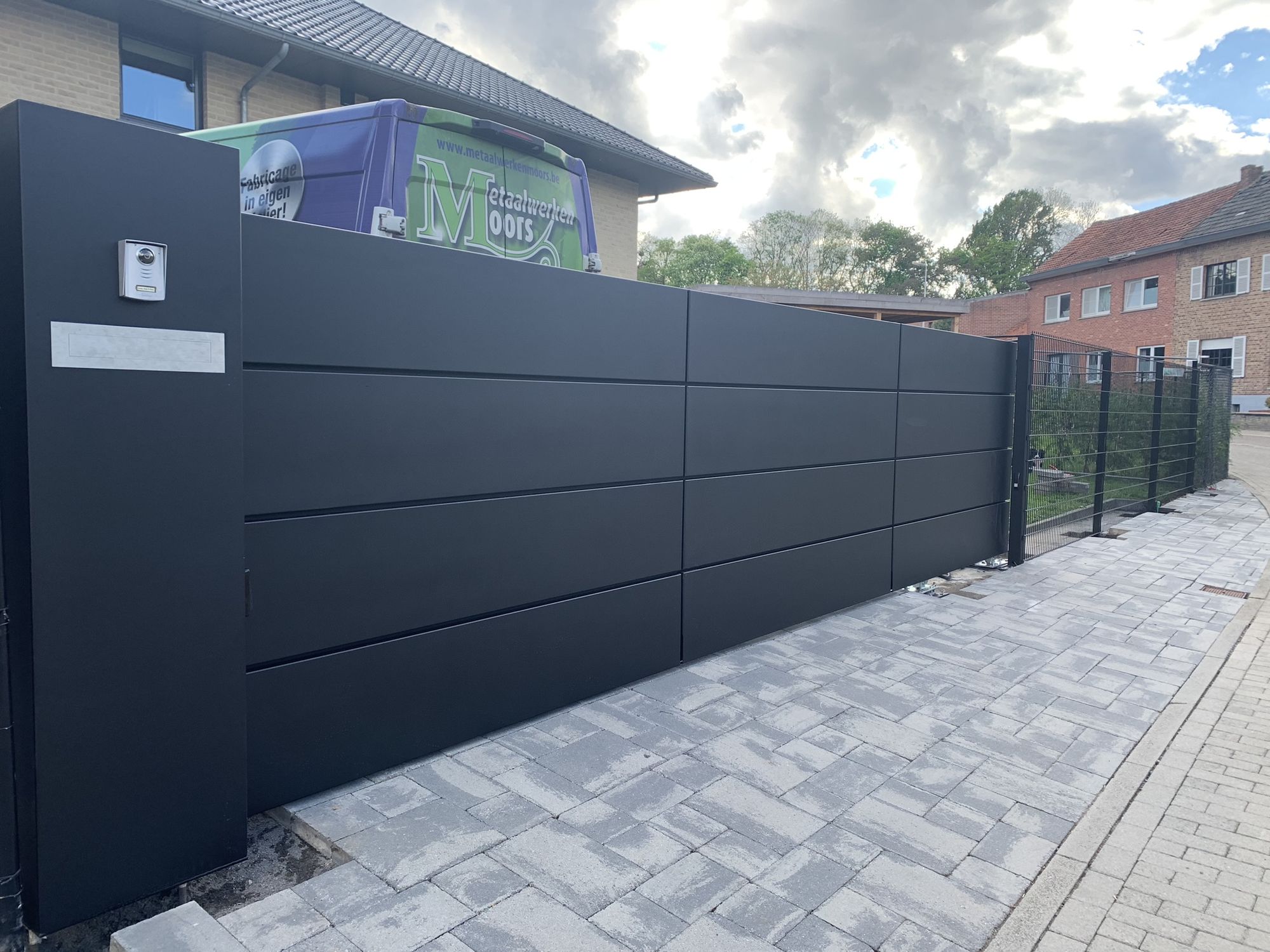 Vrijdragende schuifpoort met alu bakken