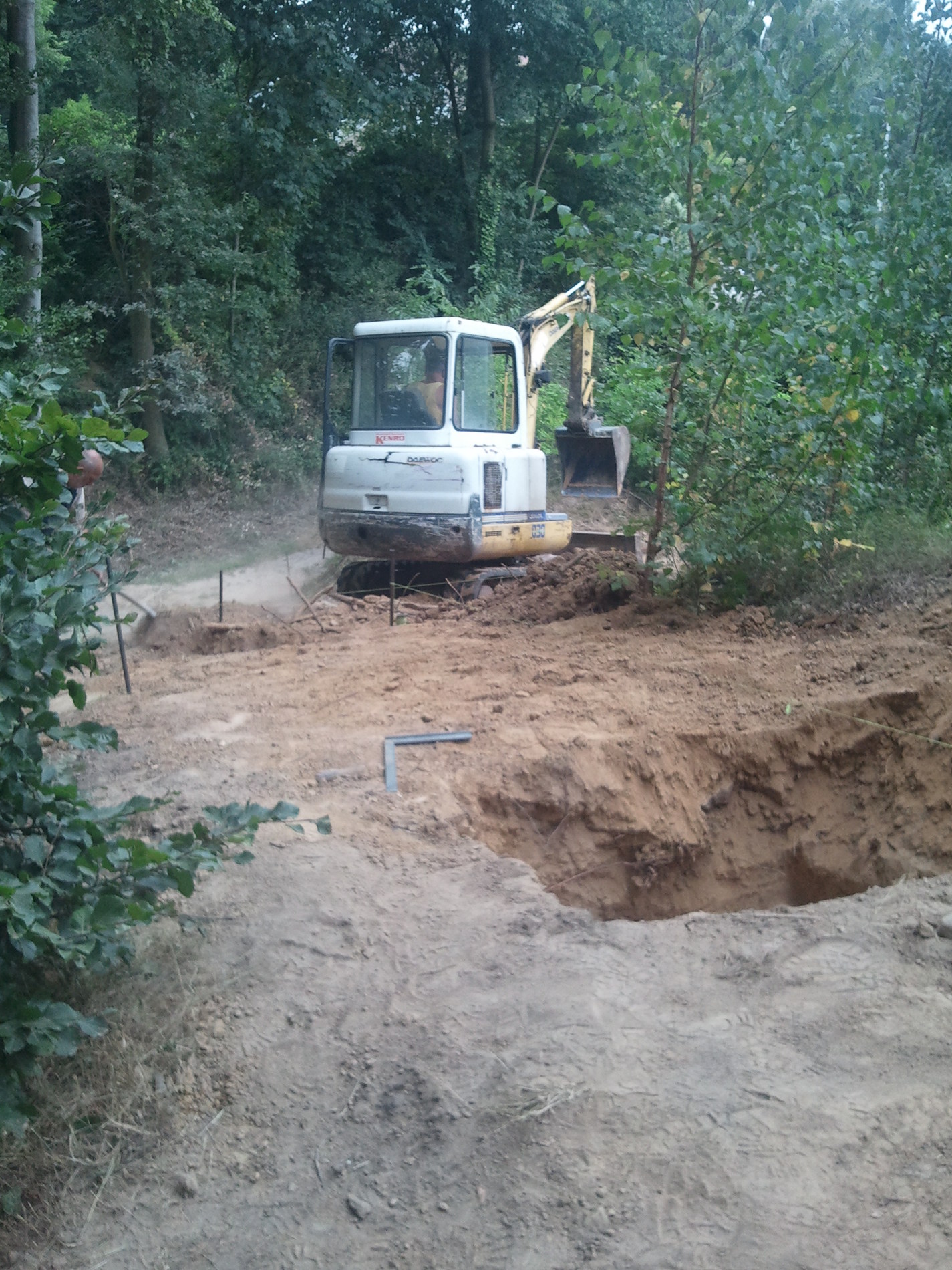 Nadat we de verkennende gesprekken achter de rug hadden, zijn we beginnen te ontwerpen. Eens alles op punt stond zijn de grondwerken begonnen waarna er een kleine 7m³ beton is gestort.