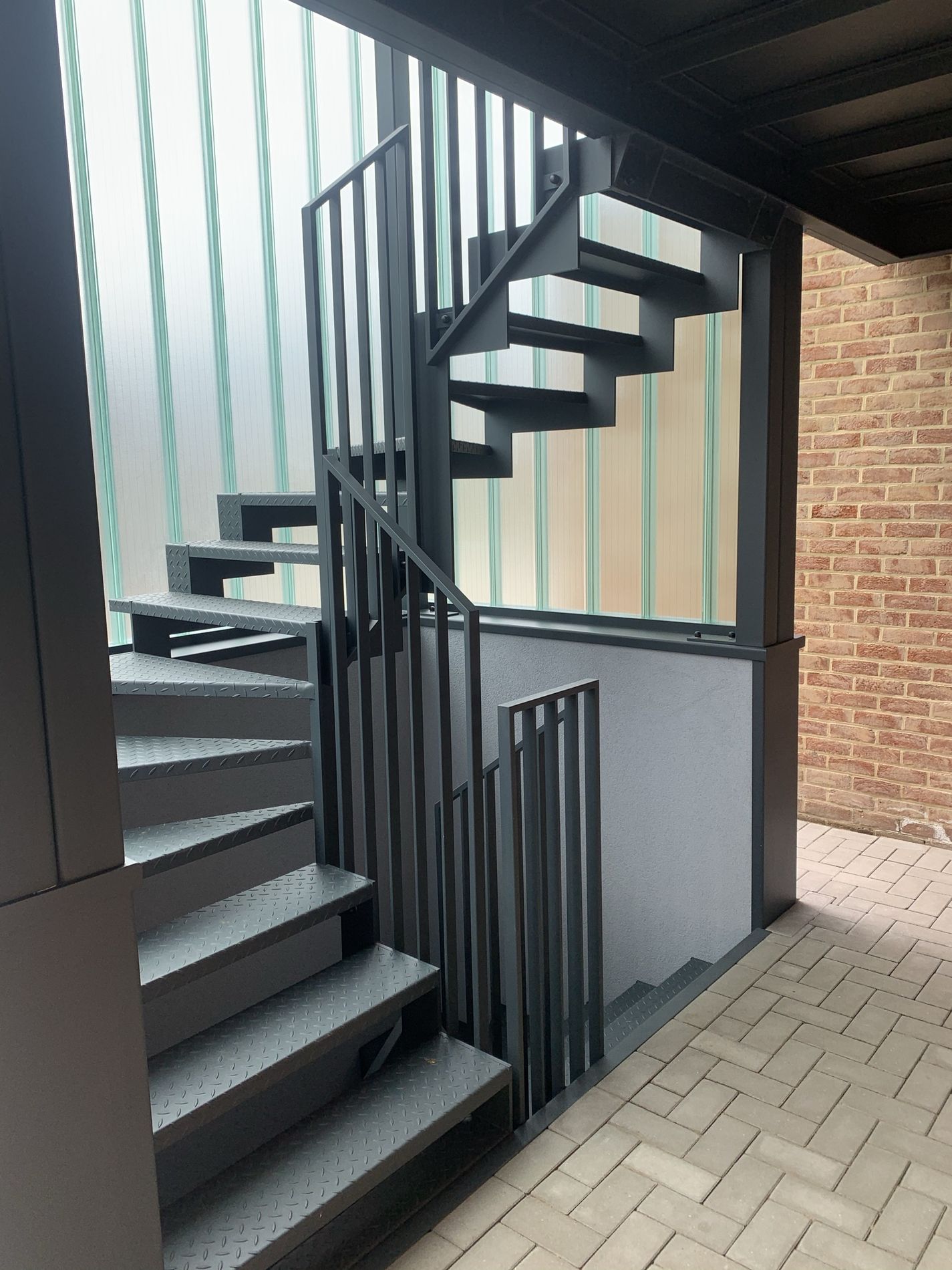 Appartementsgebouw voorzien van stalen trappen, leuningen, loopvloer.