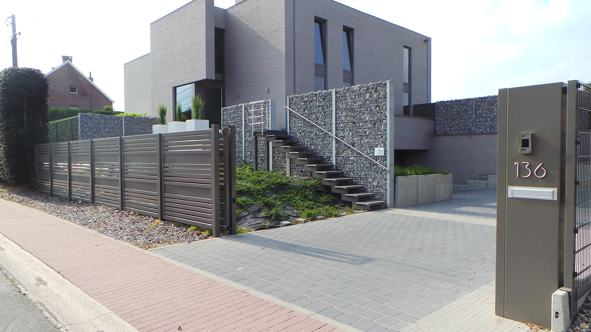 De eigenaar van deze woning zocht een firma die een totaalconcept kon leveren, zowel een afsluiting als de trap naar zijn voordeur.